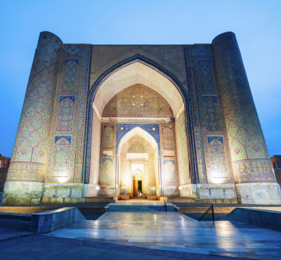 Board the Afrosiyob high-speed train and travel to Samarkand, the jewel of the Silk Road. Upon arrival, visit the iconic Registan Square, a masterpiece of Islamic architecture. Explore Gur-e-Amir Mausoleum, the final resting place of Tamerlane, and admire the breathtaking Bibi-Khanym Mosque. Walk through Siab Bazaar for a taste of local flavors. Overnight stay in Samarkand.